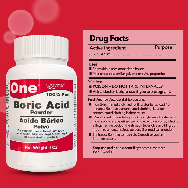 Boric acid powder is a versatile compound used as an antiseptic, antifungal, and insecticide, known for treating yeast/bacterial vaginal infections, controlling household pests (cockroaches, ants), cleaning molds, and preserving materials, with benefits including being a cost-effective treatment for certain infections and a strong insecticide, though it’s toxic if ingested and shouldn’t be used on open wounds or by children. Made in USA