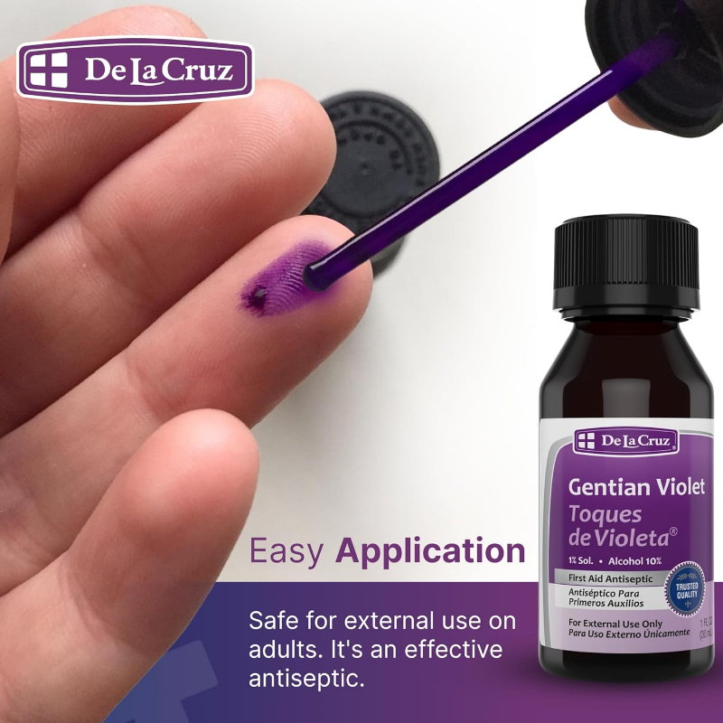 - Made in the USA for trusted quality. Gentian Violet Solution is an amazing fast-acting antiseptic treatment for minor sores, blisters, cuts, scrapes and burns. This gentian violet liquid, also known as violeta de genciana or violeta para heridas, is known for its effectiveness.