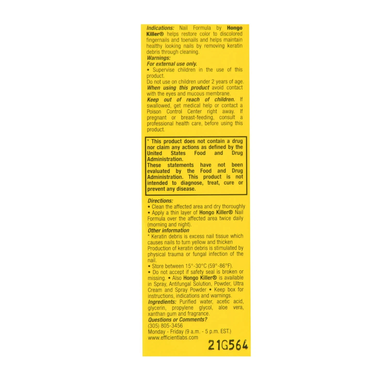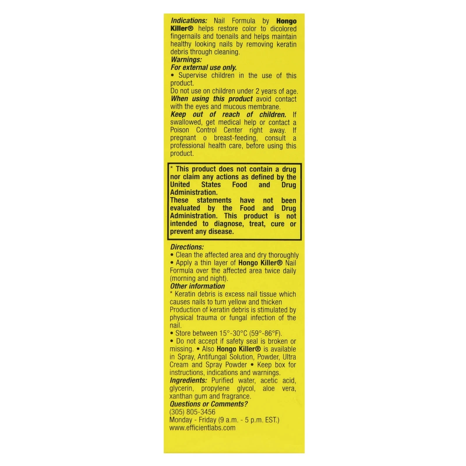 Hongo Killer Nail Formula, Helps Improve the Appearance of Discolored Fingernails & Toenails, Promotes Healthy-Looking Nails, 1 Fl Oz Bottle