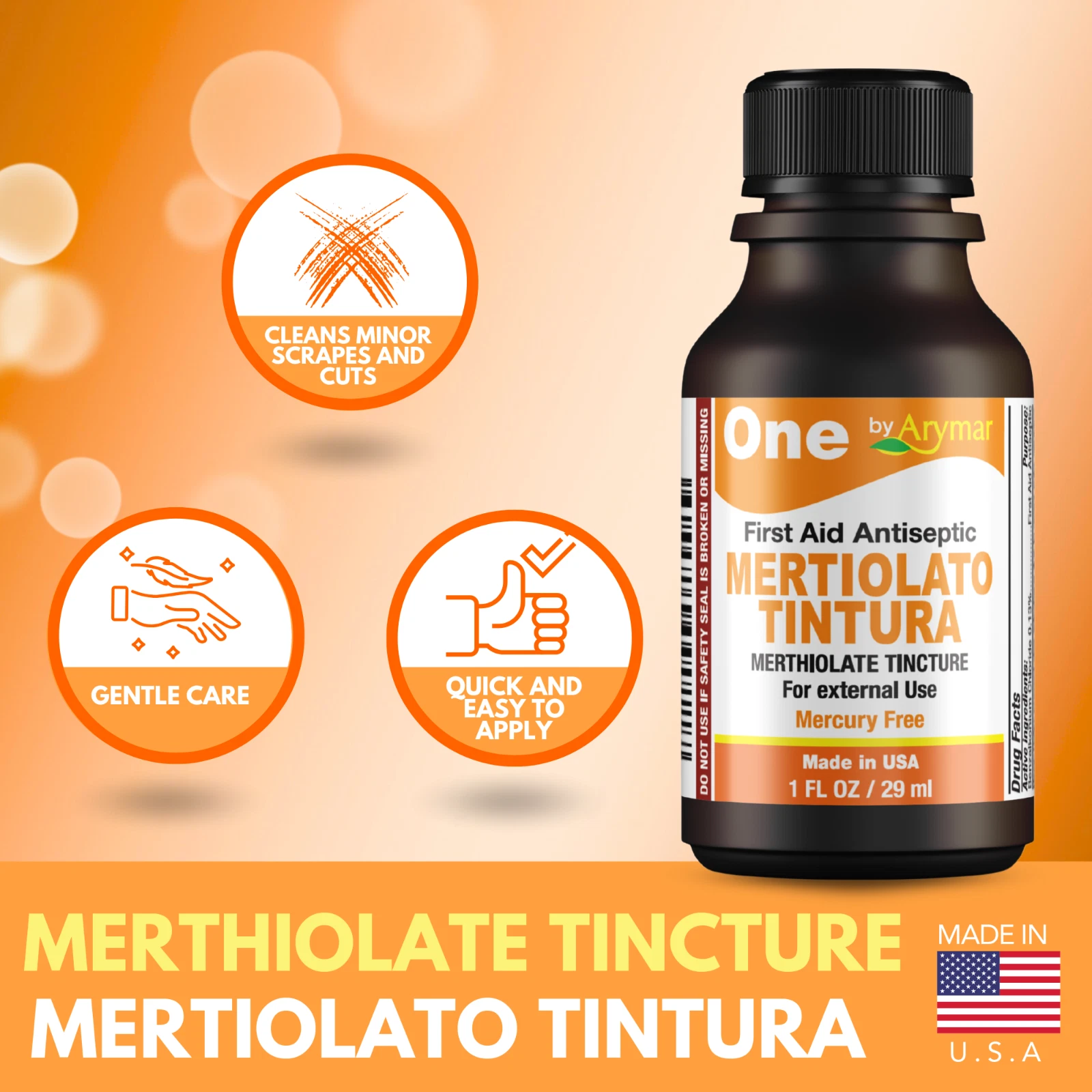 - Mertiolato Tintura is a first aid antiseptic for minor cuts, scrapes, and burns. Effective in cleaning to help prevent skin infections.