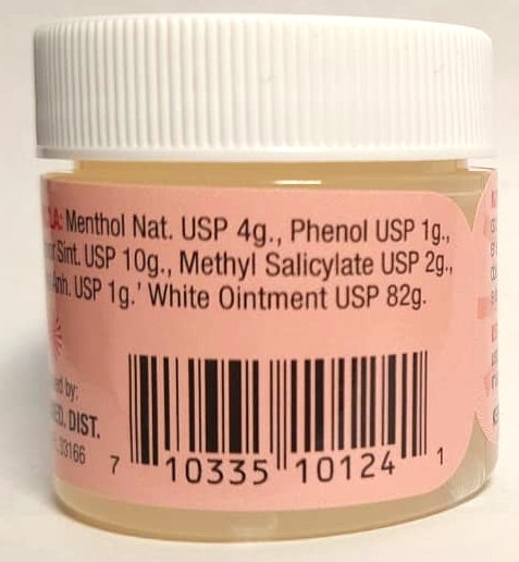 Ingredients: Menthol 4g, Phenol 1g, Camphor Sint 10g, Methyl Salicylate 2g, Lanolin Anh 1g, White Ointment 82g